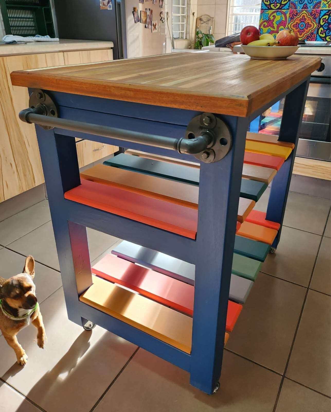 The Butchers Block is the perfect piece of furniture for the kitchen. Its solid hardwood top provides a durable yet natural look that will last for years. The top are oiled with a food grade oil. Make quick work of food preparation tasks with the convenience of a butchers block. The unit measures 900 x 600 x 900mm high. It comes installed with a industrial handle. It can be painted in a variety of colours. It also comes with 4 castor wheels, of which 2 are fitted with brakes.
