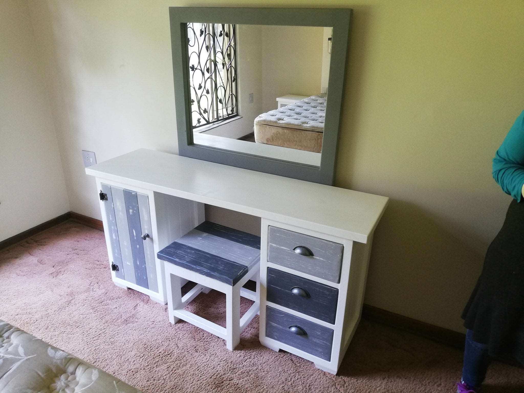 This classic pine dressing table is perfect for any bedroom. It includes a mirror, chair, and three drawers with smooth-gliding runners. Create the perfect space for makeup, skincare, and other bedroom accessories.