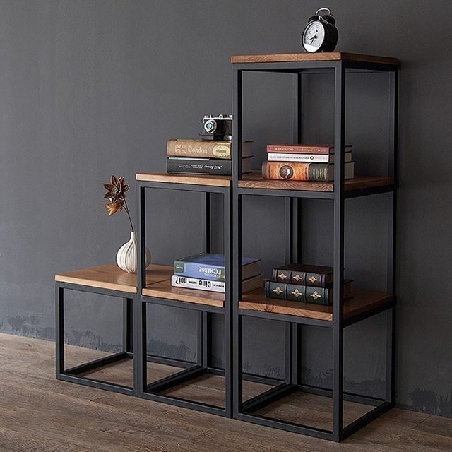 Set of 3 cubicle bookshelfs made with steel and solid pine